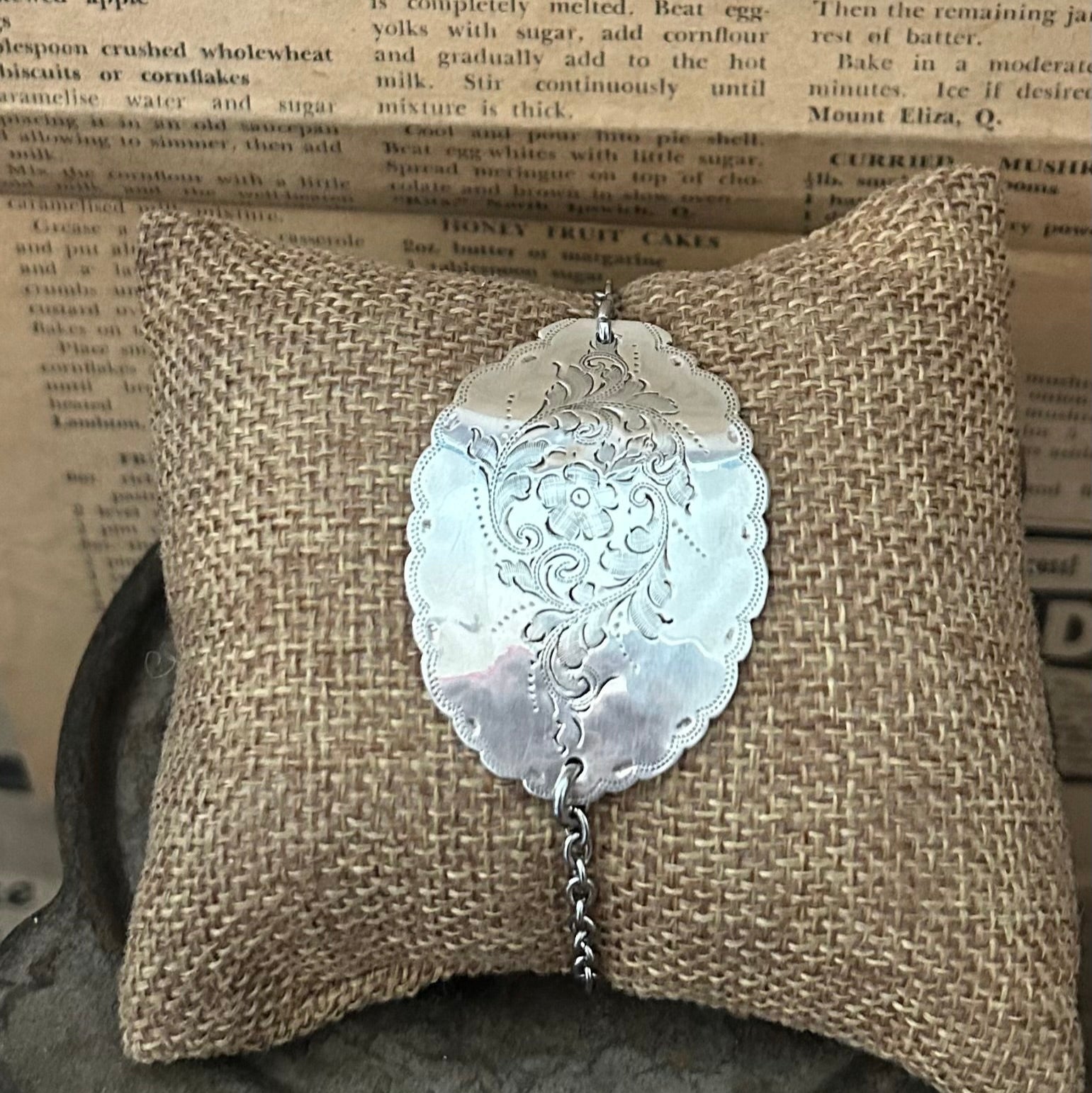 ● Made from an original 1898 London hallmarked sterling silver sugar spoon bowl – Over 125 years old and full of Victorian era character.