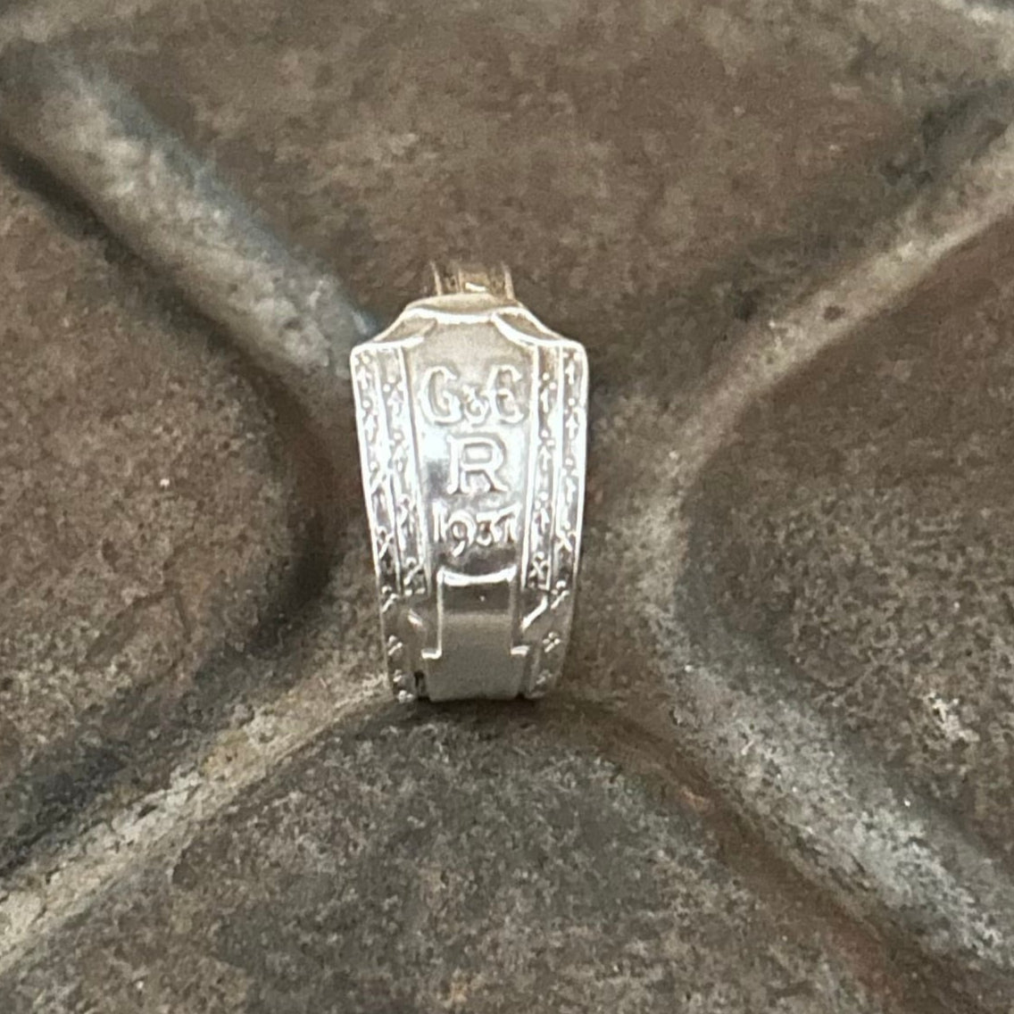 Created from an original 1937 sterling silver King George spoon handle, this piece is more than just jewellery, it’s a tribute to history and heritage. The year 1937 etched clearly and proudly on the front marks the coronation of King George VI, and now lives on as a symbol of resilience, tradition, and timeless design.