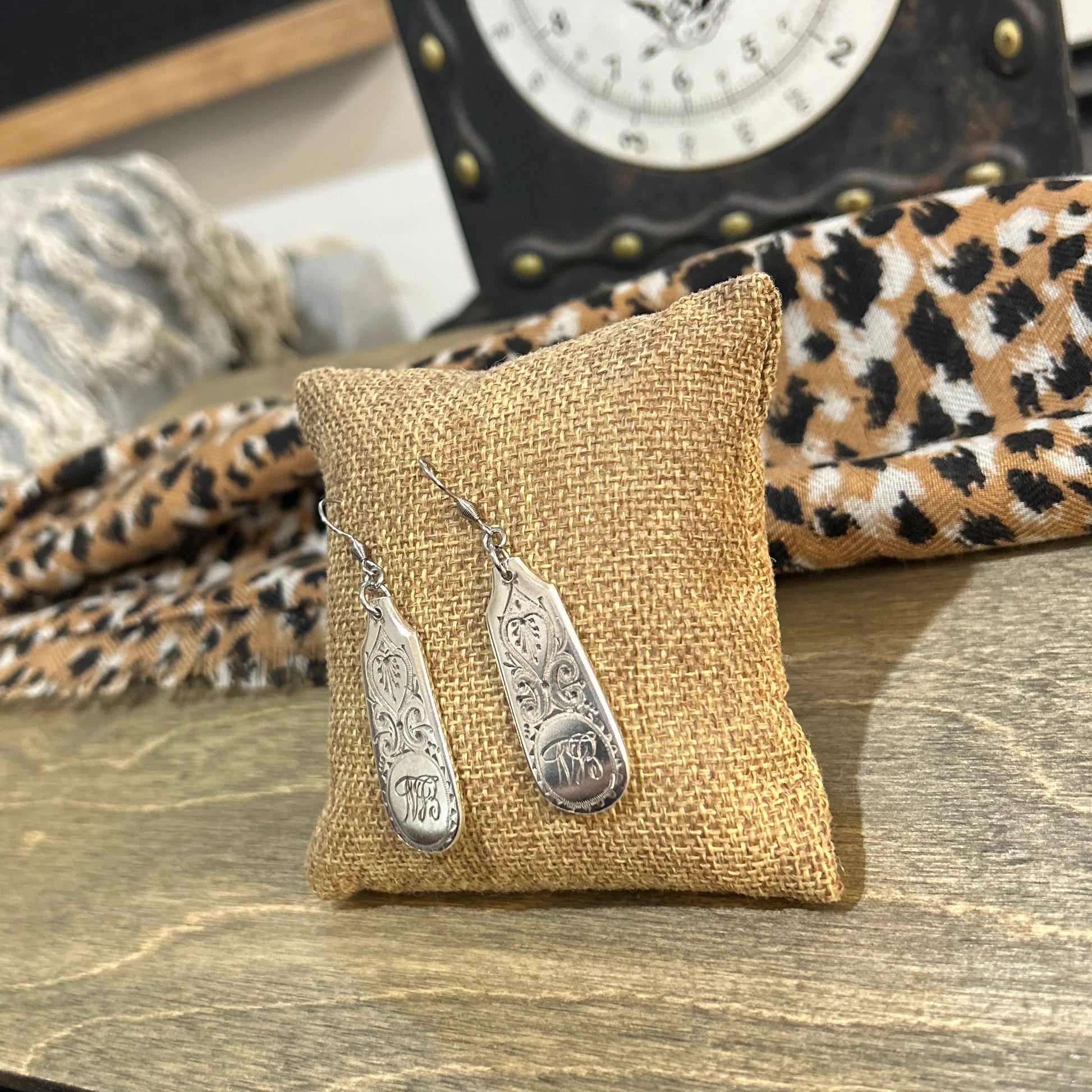 Each earring features beautifully etched designs along with an ornate monogram. A part of history that once belonged to another era, another owner, another story. These antique elements have now been preserved, letting the character and sentiment of the past to shine through.