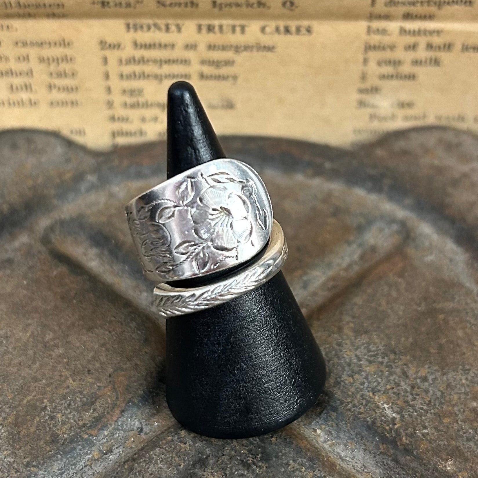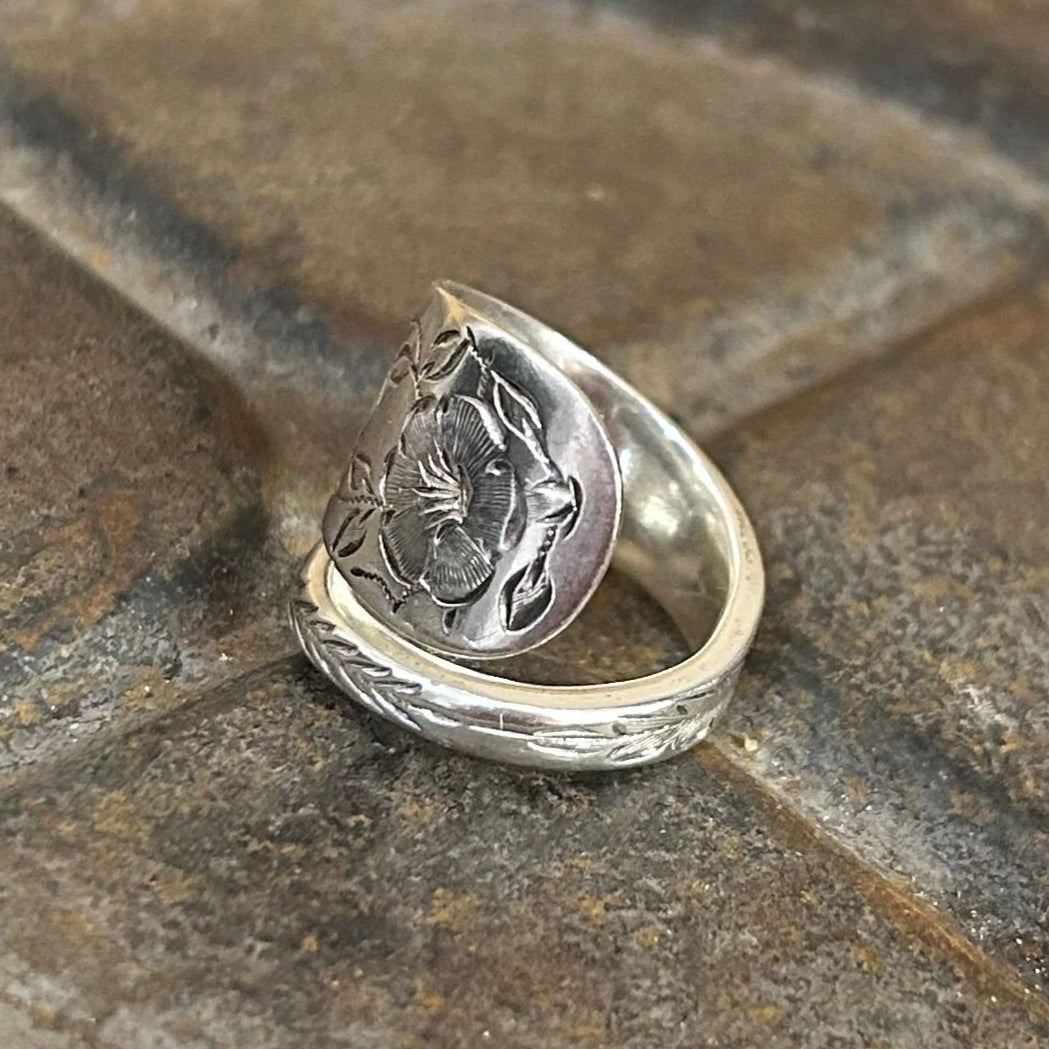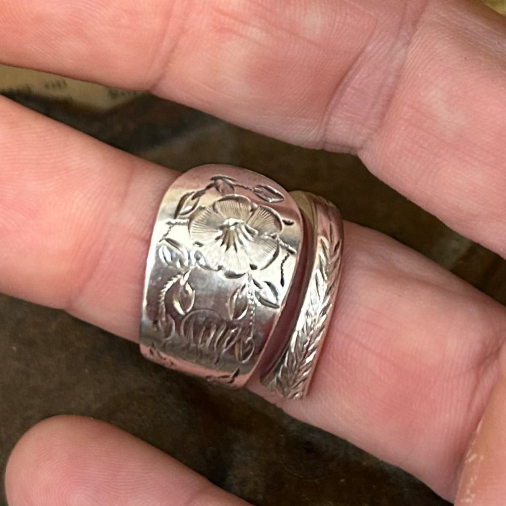 Full of elegance and Edwardian charm, this wrap style ring has been created from a sterling silver spoon handle made in 1911 by George Guirren Roden of Sheffield a silversmith known for quality and attention to detail. Over 110 years later, this once forgotten piece of silverware has been transformed into a wearable treasure.